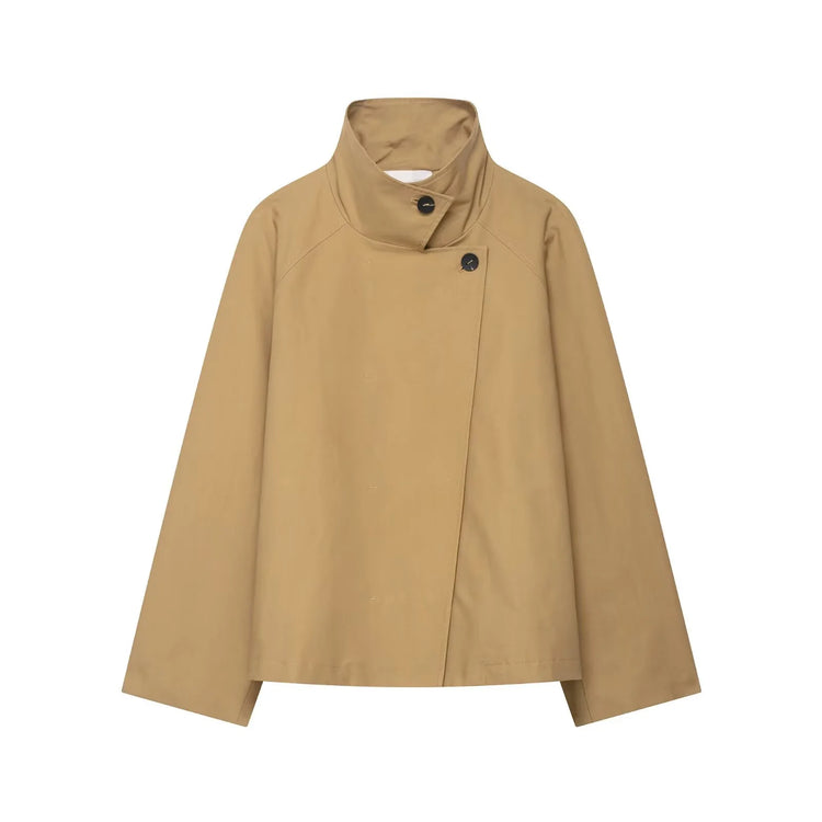 2025 autumn new women's casual fashion simple all-match high collar A-shaped long-sleeved windbreaker short jacket