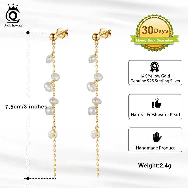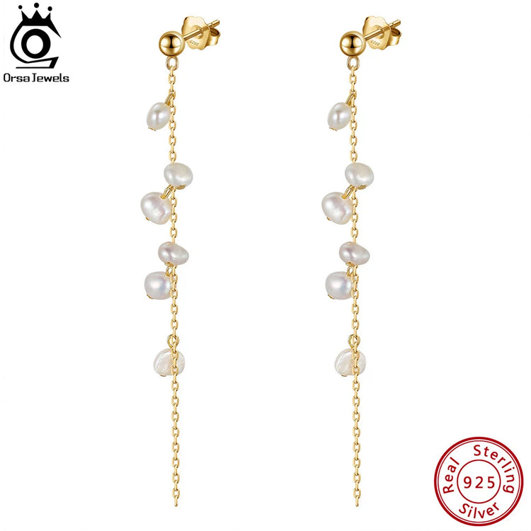 ORSA JEWELS Personality Branch Tassel Earings 925 Sterling Silver 14k Gold Plated Natural Pearl Earrings For Women Jewelry GPE08