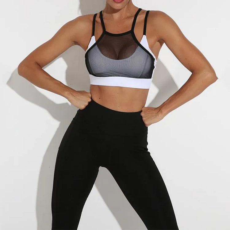 Sports Bras Yoga Bras Vest Mesh Sport Crop Top Women Push Up Bra Active Wear Underwear Vest With Chest Pads Gym Fitness Bras
