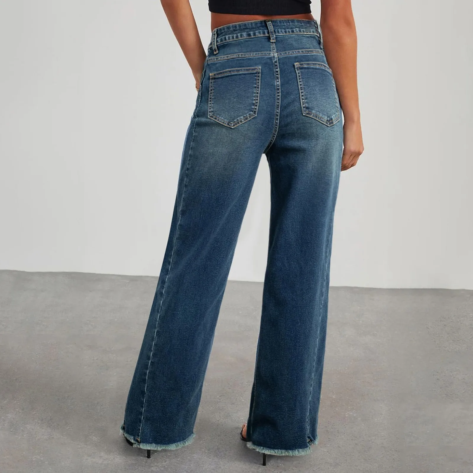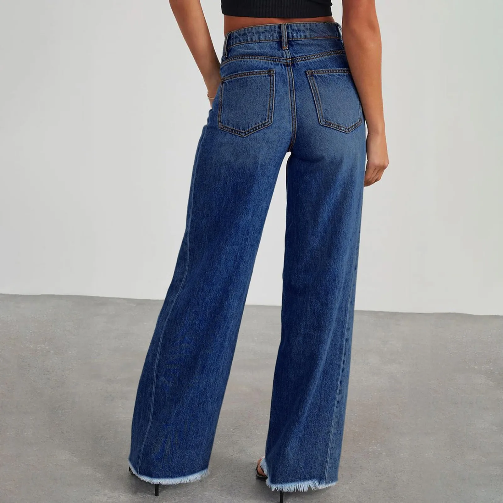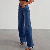 Women's Jeans Casual And Fashionable Straight Leg Elastic Fringed Denim Pants