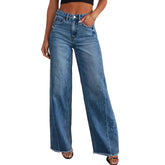Wide-Leg Jeans Women Light Blue Raw-Edge High-Waist Design Fashionable Trousers Loose-Fitting Slim-Fitting Pants Daily Commuting