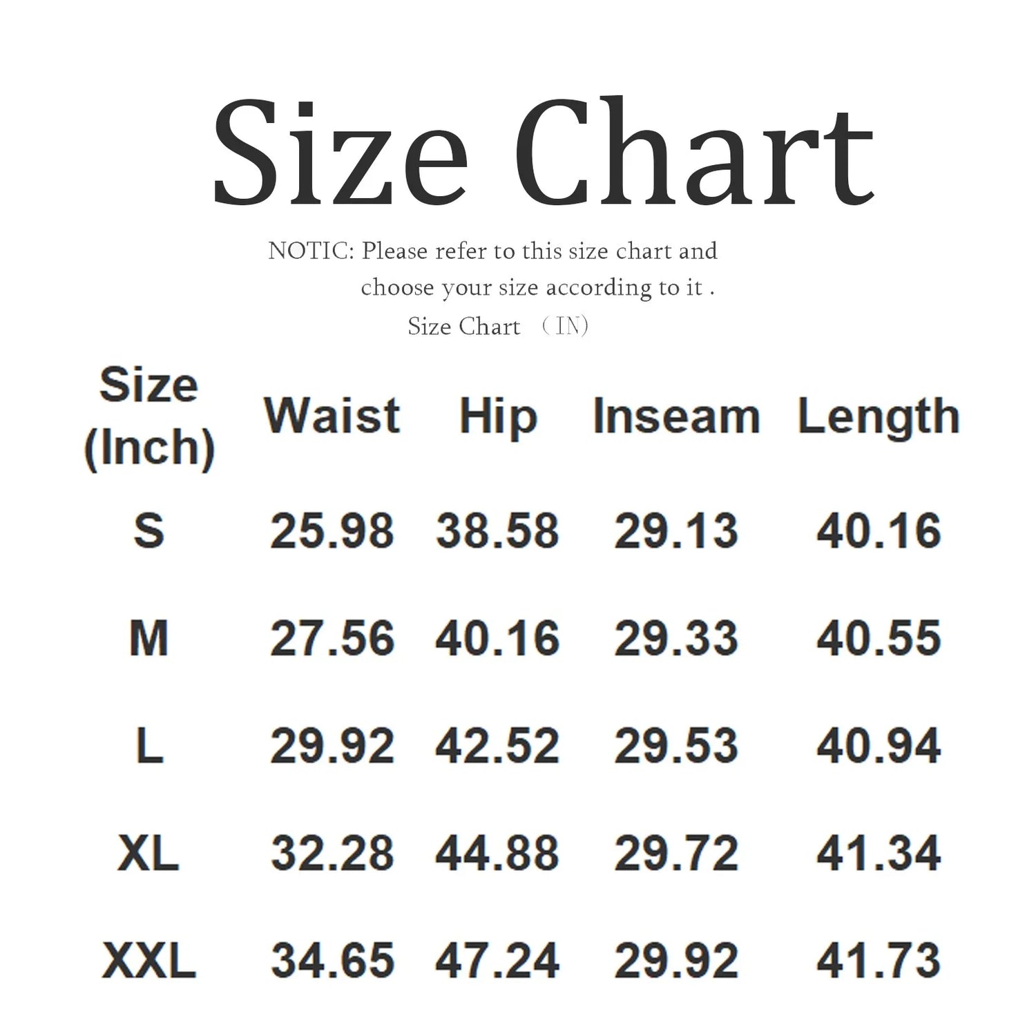 Size | Waist | Hip | Inseam | Length |