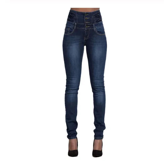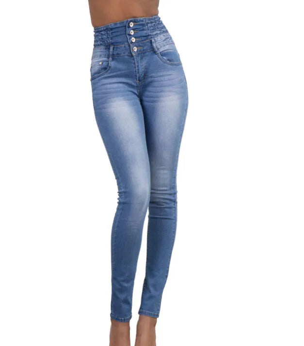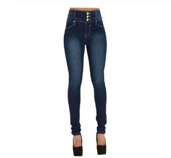 Women Tall Girl Button Fly Jean High Waisted Stretch Levanta Cola Good Stretchy Ankle 80s 90s Denim Pant Slim Denim Pants Blue