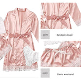 Four Piece Women's Sleepwear Set Nightgown Paired with Lace See Through Sexy Suspender Close Fitting Underwear Sleepwear Set