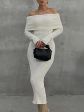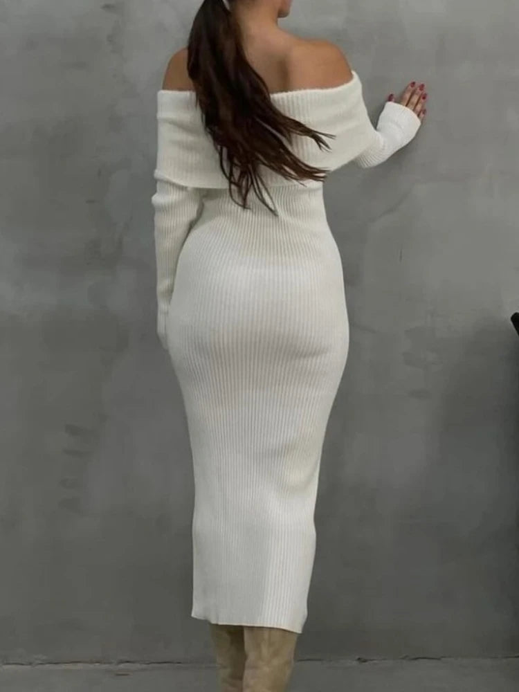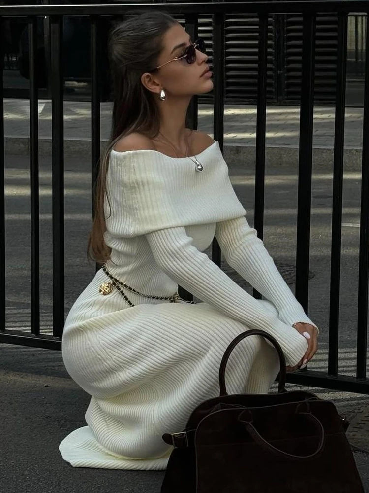 Ladies Knitwear Maxi Dress Fashion Knit Long Dress Off-Shoulder Female Ribbed Loose High Waist Elegant Autumn Party Dress