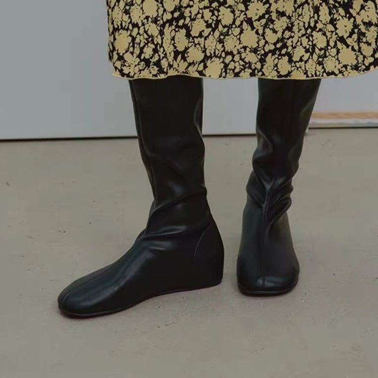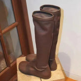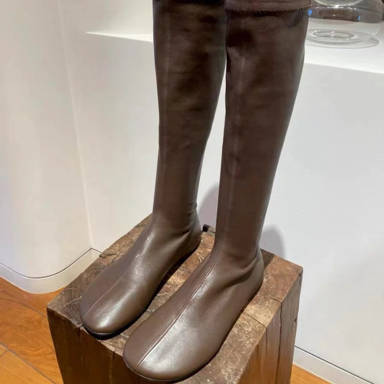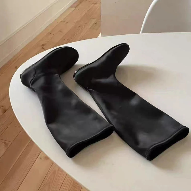 2025 New Women High Boots Flats Leather Shoes Fashion Winter Chelsea Knight's Boots Party Brand Woman Shoes Casual Botas Mujer