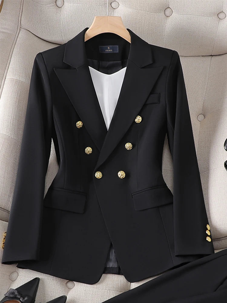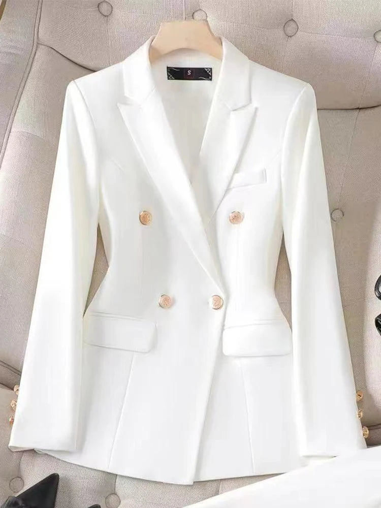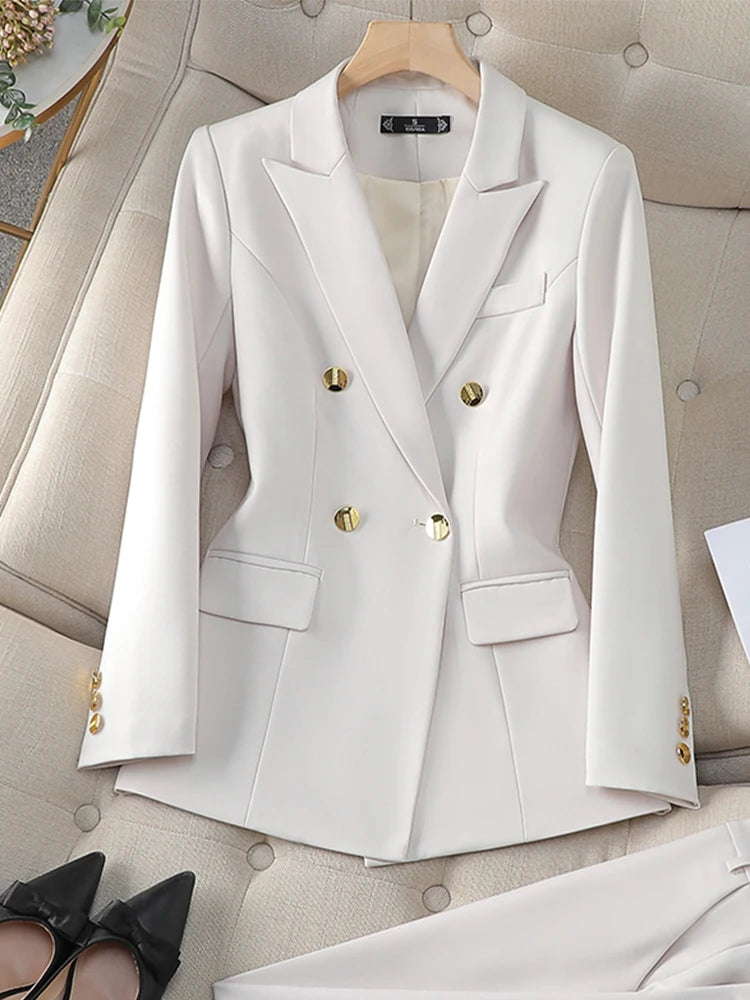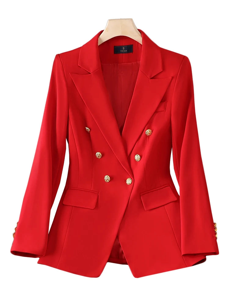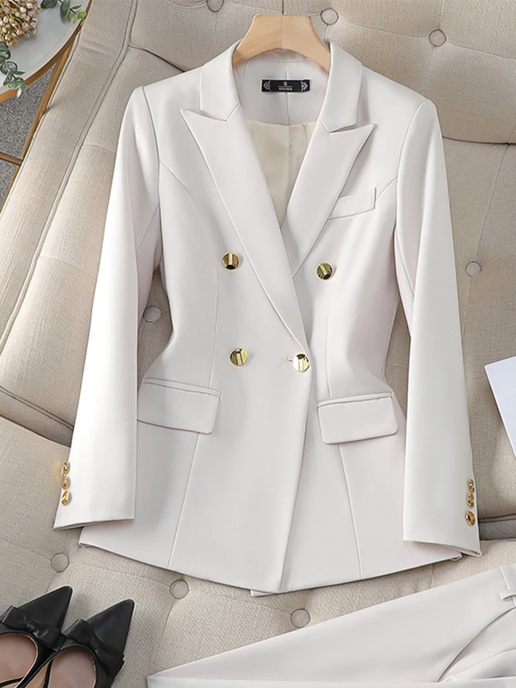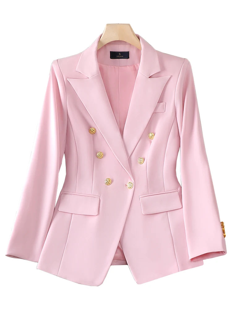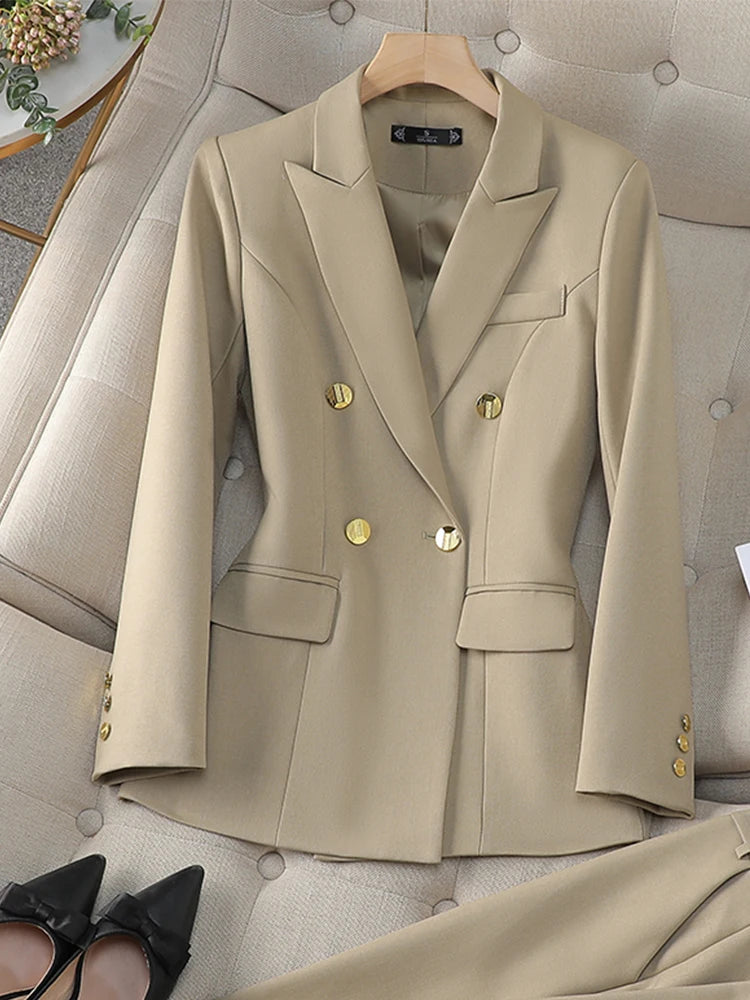 Fashion Autumn Winter Apricot Women Blazer Coat Long Sleeve Ladies Casual Jacket