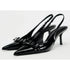 2025 Modern Office Shoes for Women Black red Wedding Slingback Pointed Toe Butterfly Decoration Female High Heeled Sandals