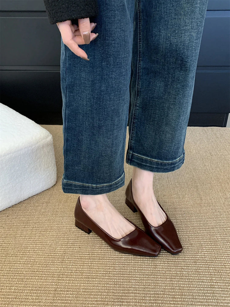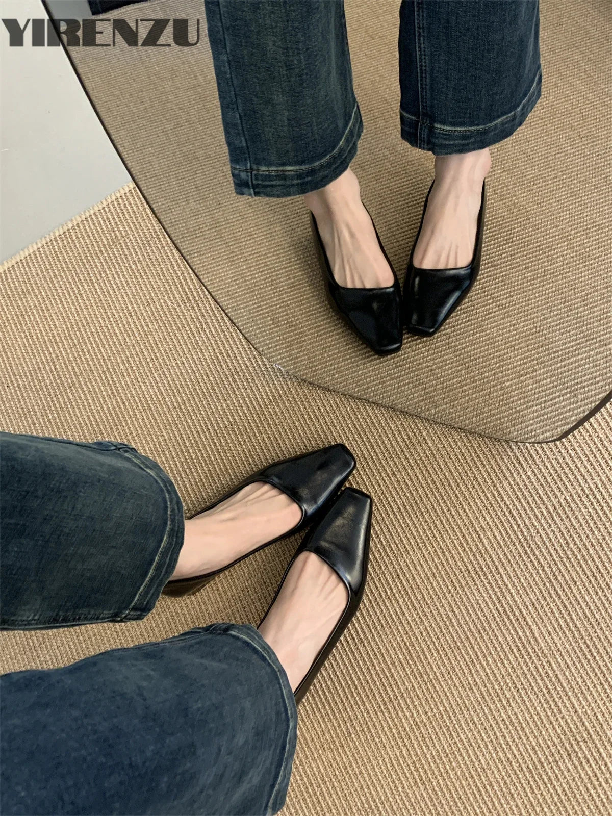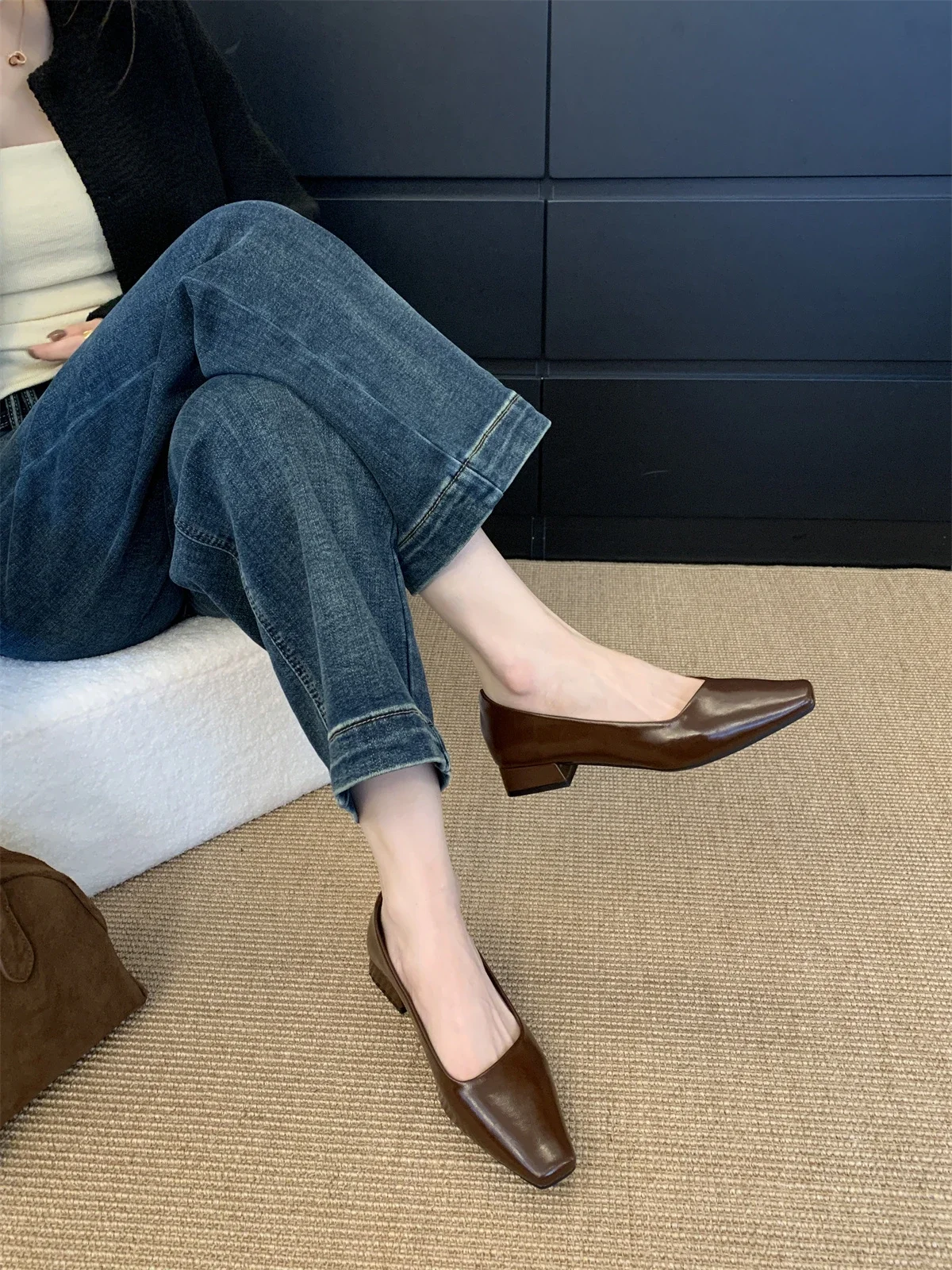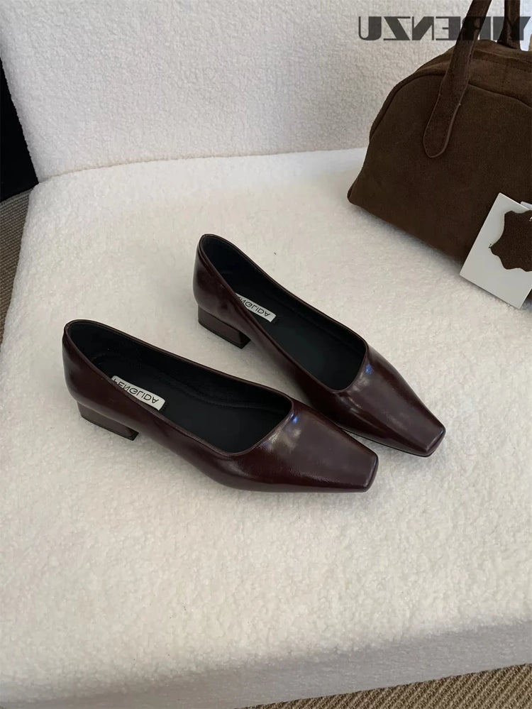 2025 New Fashion High Heels Women Square Toe Pumps Elegant Low Heel Footwear Shallow Comfort Office Women Shoes Tacones