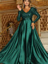 2025 New Fashion Women Lady Sexy Deep V-neck Sequin Long SleeveFloor Length Bling Big Hem Party Wedding Evening Maxi Dress