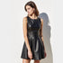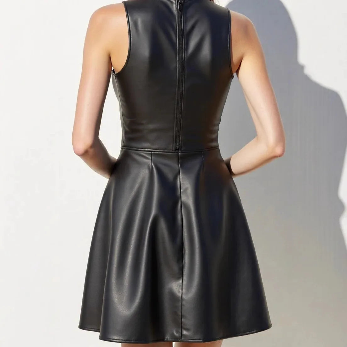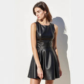 2025 New Women's Fashion Sexy Slim A-line Dress Round Neck Sleeveless Waist-cinching PU Leather Dress