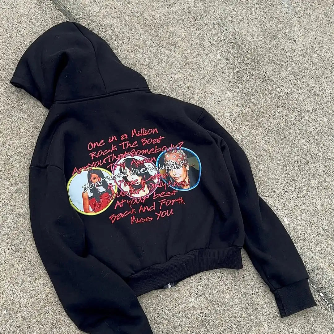 American Letter printed hooded sweatshirt hip-hop hooded jacket retro long sleeved hooded sweatshirt sports shirt