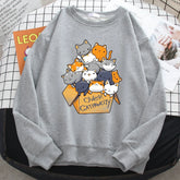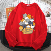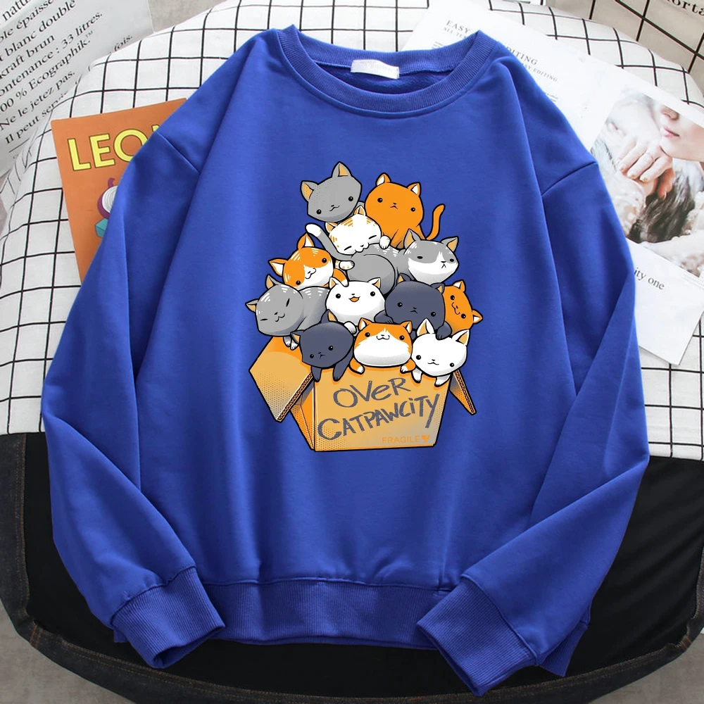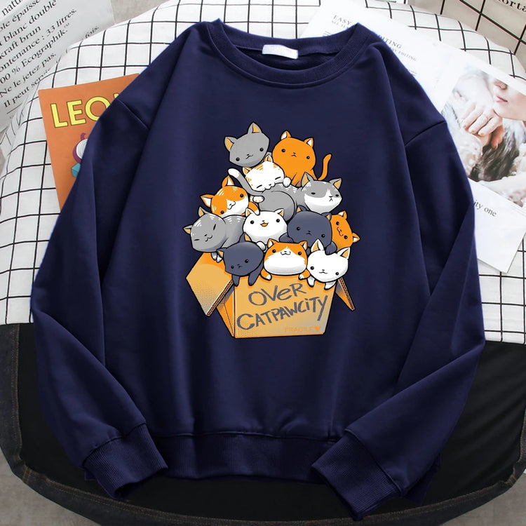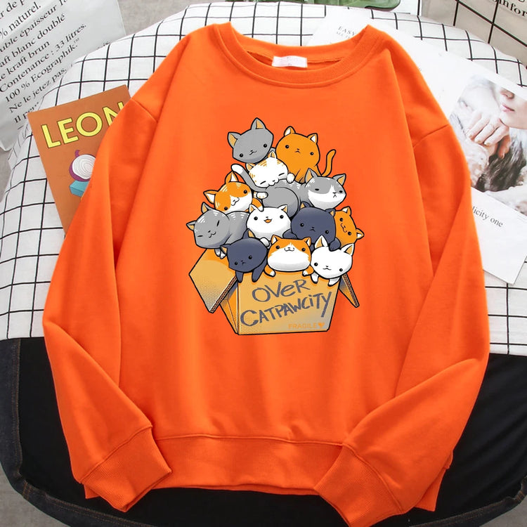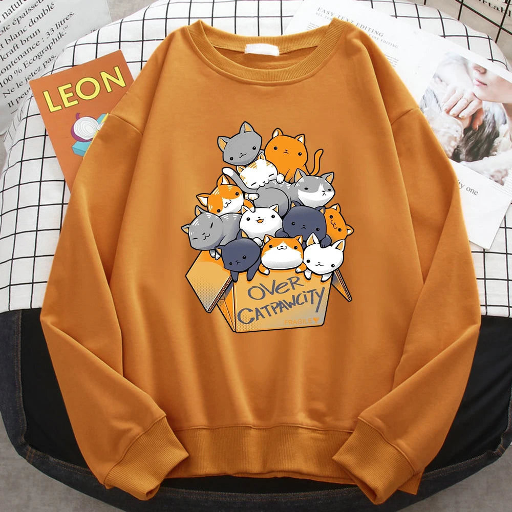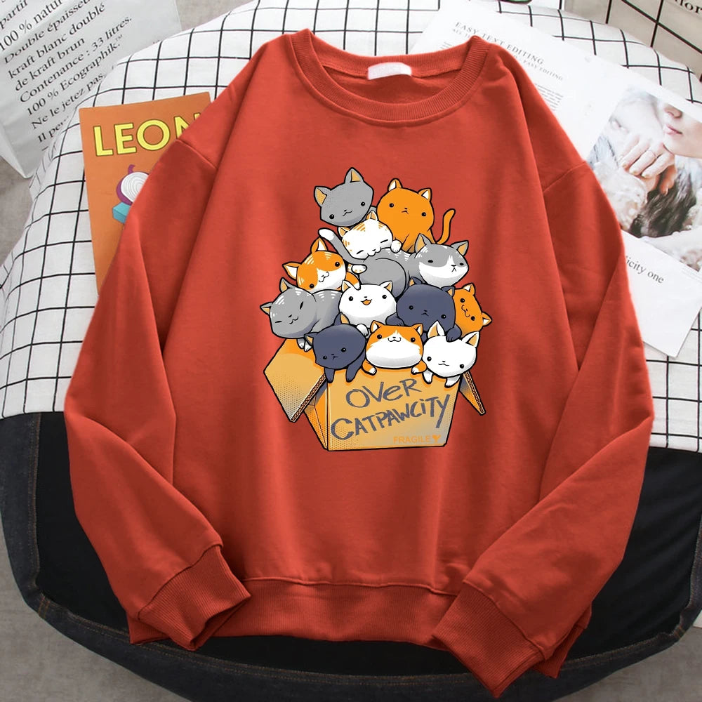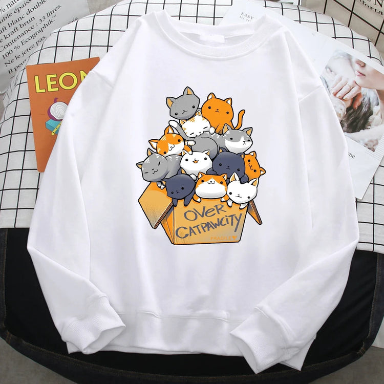 Autumn Casual Woman Pullover Many Cats Gathered In Printing Hoodies Comfortable Fleece Sweatshirt Crewneck Loose Female Clothes