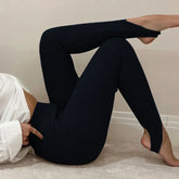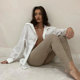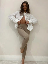 Beige Ribbed Knit Leggings Women High Waist Cotton Fitness Basic Pants Casual Spring New All-Match Female Skinny Leggings