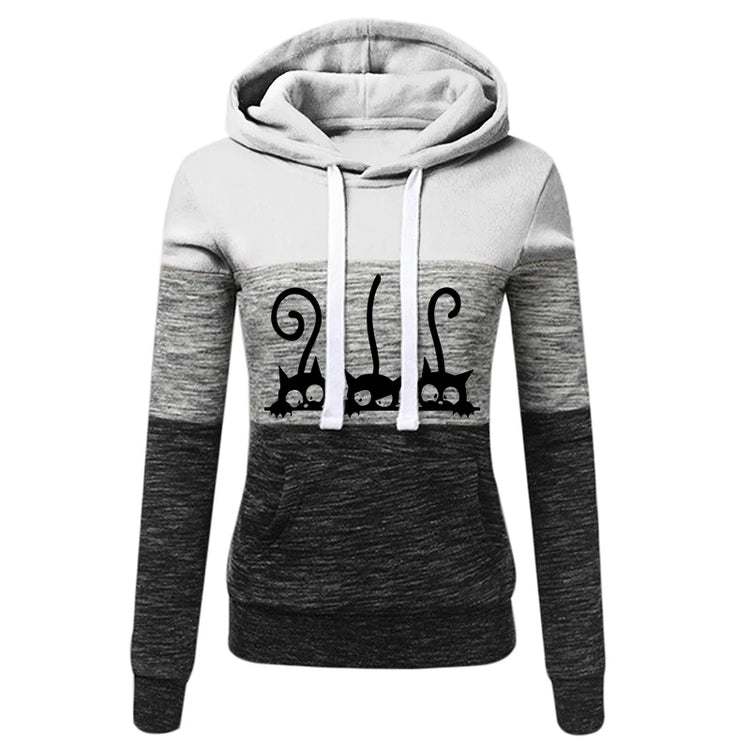 Cute Cat Women's Fleece Long Sleeve Hoodie Slim Fit Sweatshirt Autumn Winter Warm Ladies Casual Color Matching Outdoors Pullover