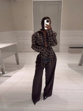 Model Number: Deep V-neck Plaid Long Sleeve Shirt