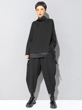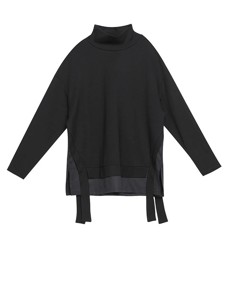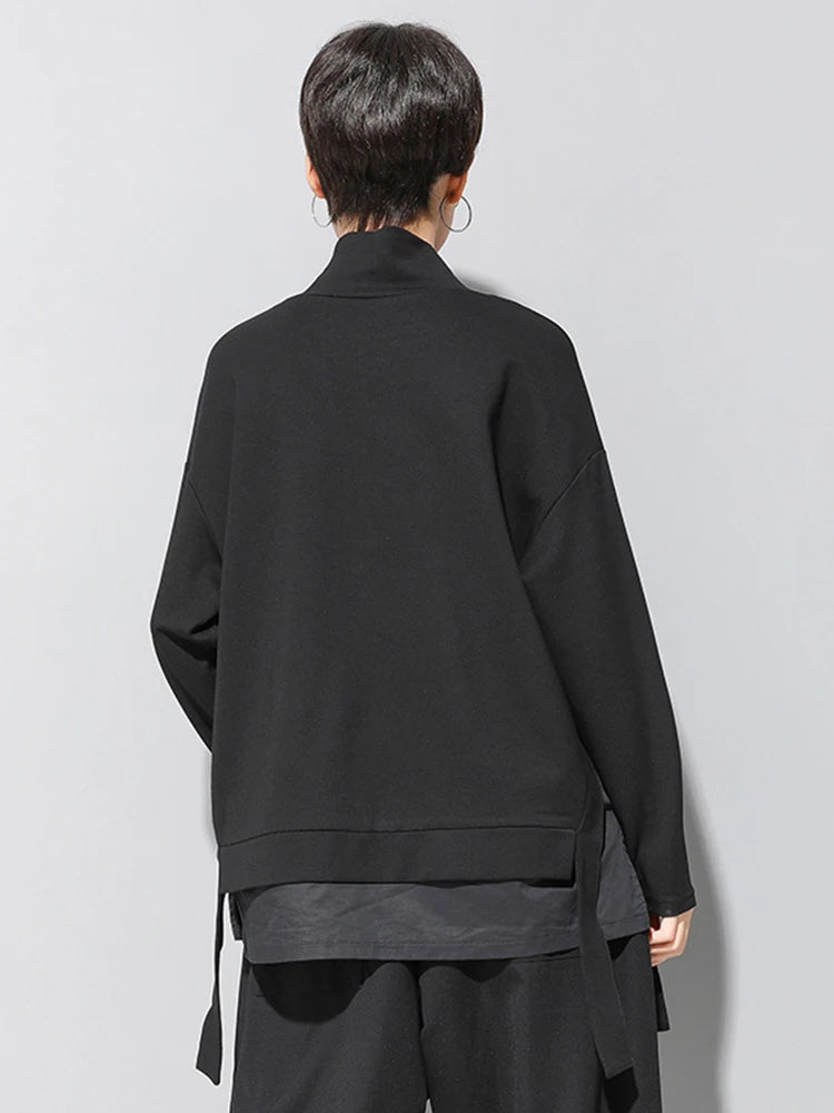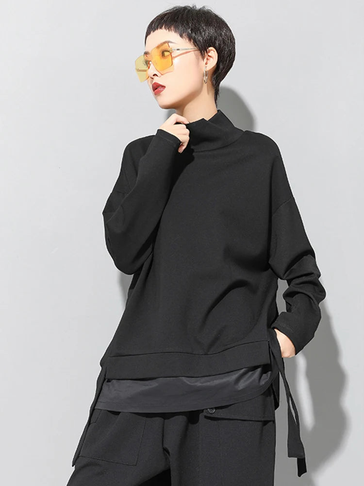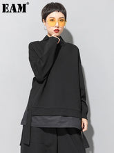 [EAM] Loose Fit Asymmetrical Big Size Sweatshirt New High Collar Long Sleeve Women Big Size Fashion Spring Autumn 2025 19A-a124