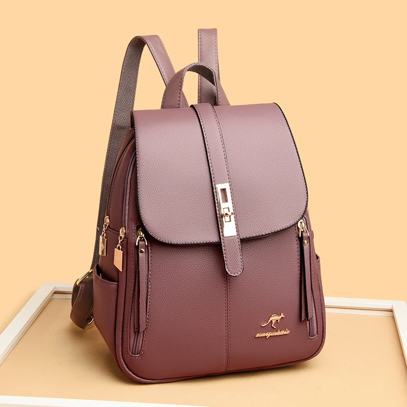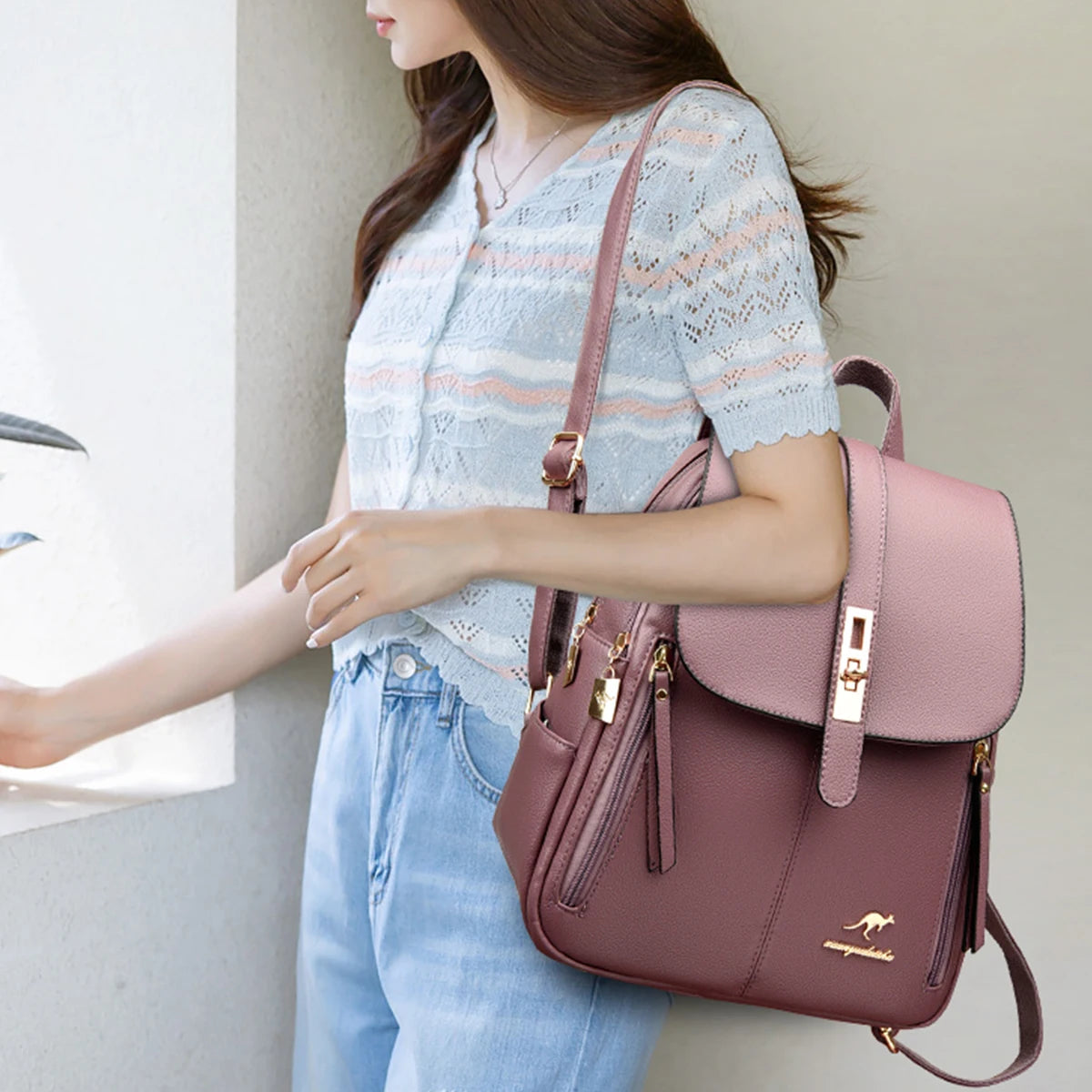 Detachable straps transform between backpack, shoulder bag, and handbag styles