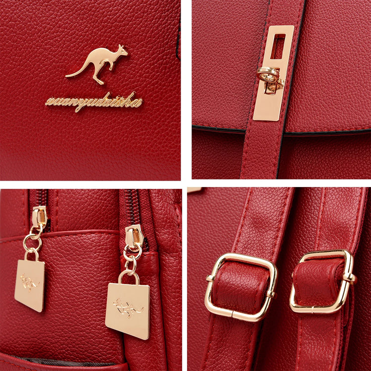 Fashion Kangaroo Logo Backpack - Shiny PU Women Bag with Detachable Straps Large Capacity Zip handbag for Work/School/Shopping