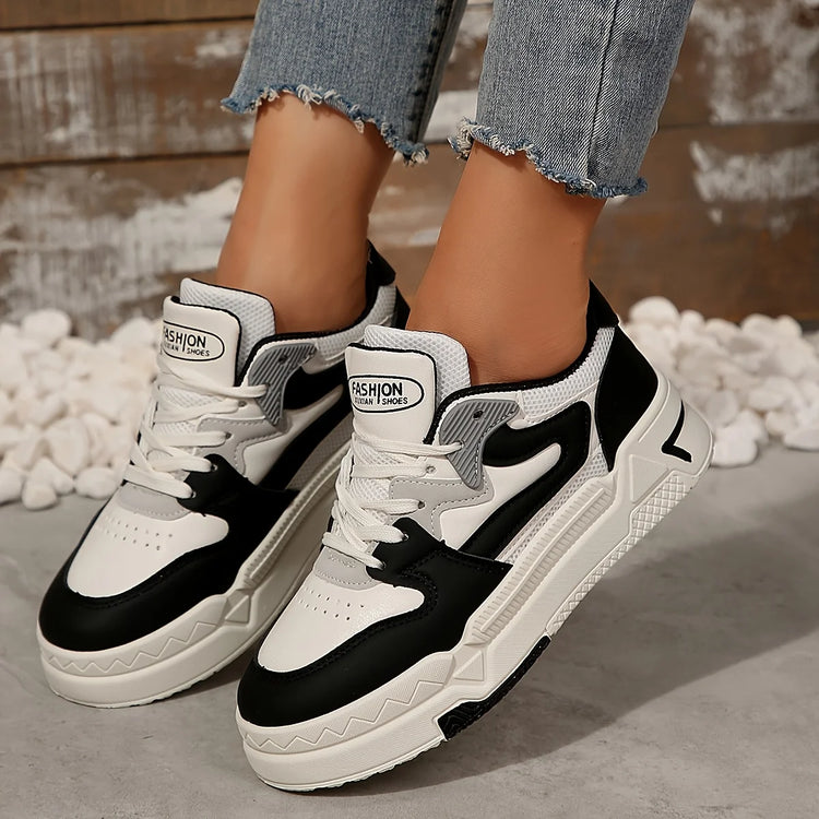 Fashionable Sneaker Breathable Black White Shoes for Women All Seasons, Casual and Sports Wear, Trendy Ins Style