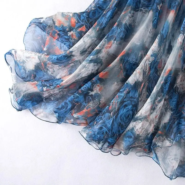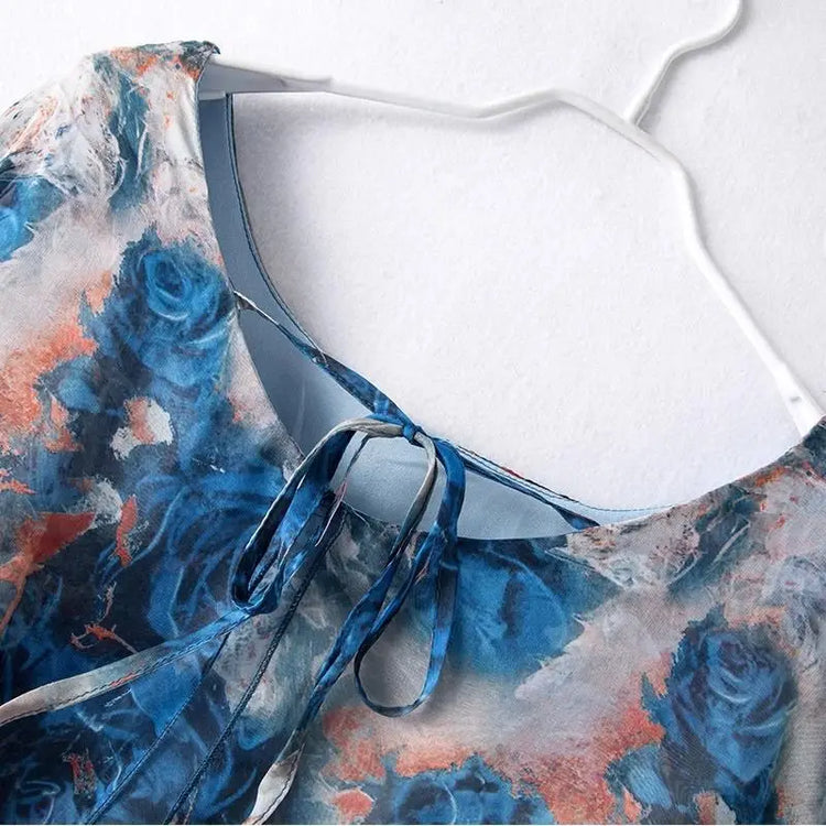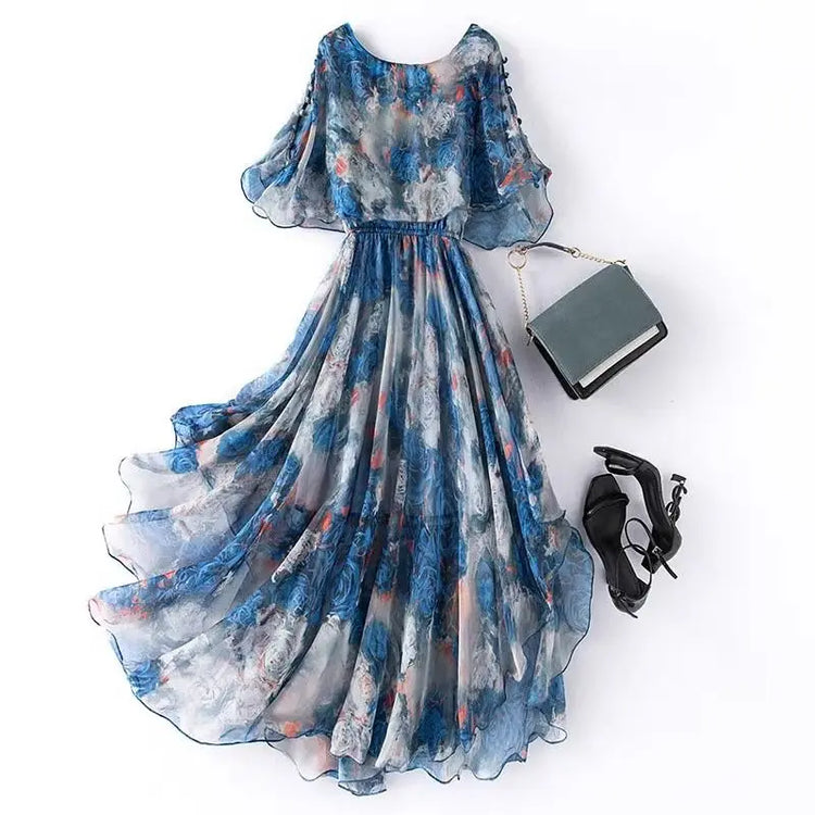 Floral Printed Chiffon Dresses Women Half Sleeve Loose Mid-length Dress Retro Office Lady Casual Wear Spring Autumn New Fashion