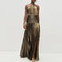 Gold Sexy Halter High Split Gowns Evening Dress Woman Chic Solid Hollow Pleated Long Dress Spring Summer Backless Zip Maxi Dress