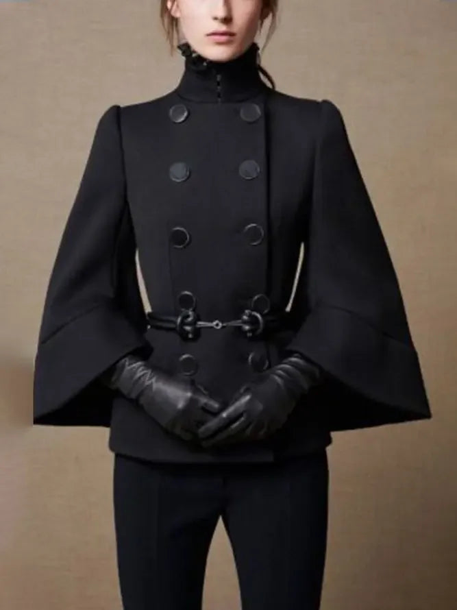 Gymystars Womens 2025 Short Jacket England Buttoned Black High Neck Coats Spring Long Flared Sleeves Outerwear For Women