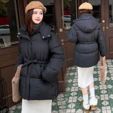 Hooded Parkas Coats Women Mid Length Jackets Solid Lace Up Pocket Zipper Waist Cinched Long Sleeve Loose Fit Casual 2025 Winter