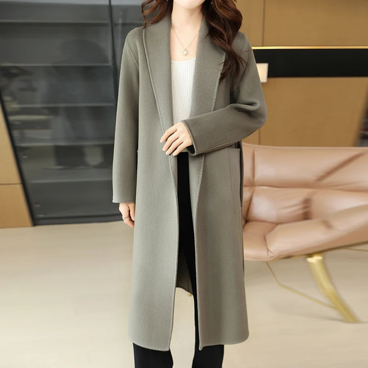 Ladies' 100% Cashmere Thick Double-Sided Long jacket, Classic and Multifunctional, Fashionable And Suitable For Business