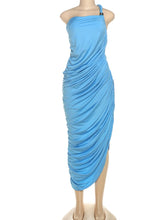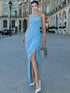 Nibber Fashion Asymmetry Split Dress Women Backless Ruched Solid Elegant Slim Birthday Party Clubwear Skew Collar Sexy Vestidos