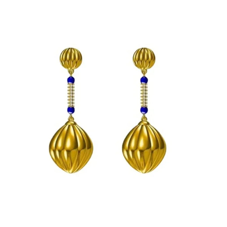 Original design Retro lapis lazuli earrings for women classic Laziness antique gold crafts glossy round beads earings jewelry