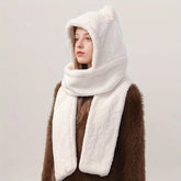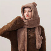 Plush teddy bear hat scarf one-piece women's winter scarf cute winter versatile cycling warmth with plush ear protection hood
