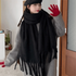 Retro Mohair Wool Scarf Plush Thicken Winter Cashmere Scarves Solid Color Tassel Long Shawl Girl