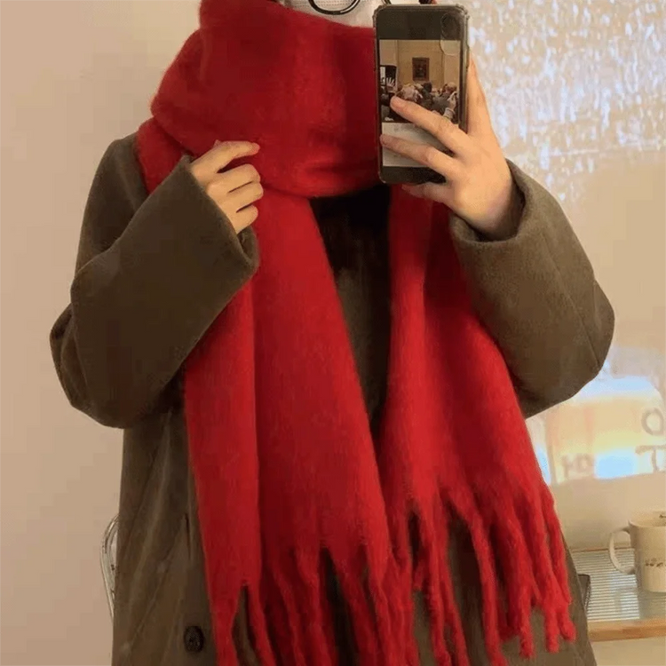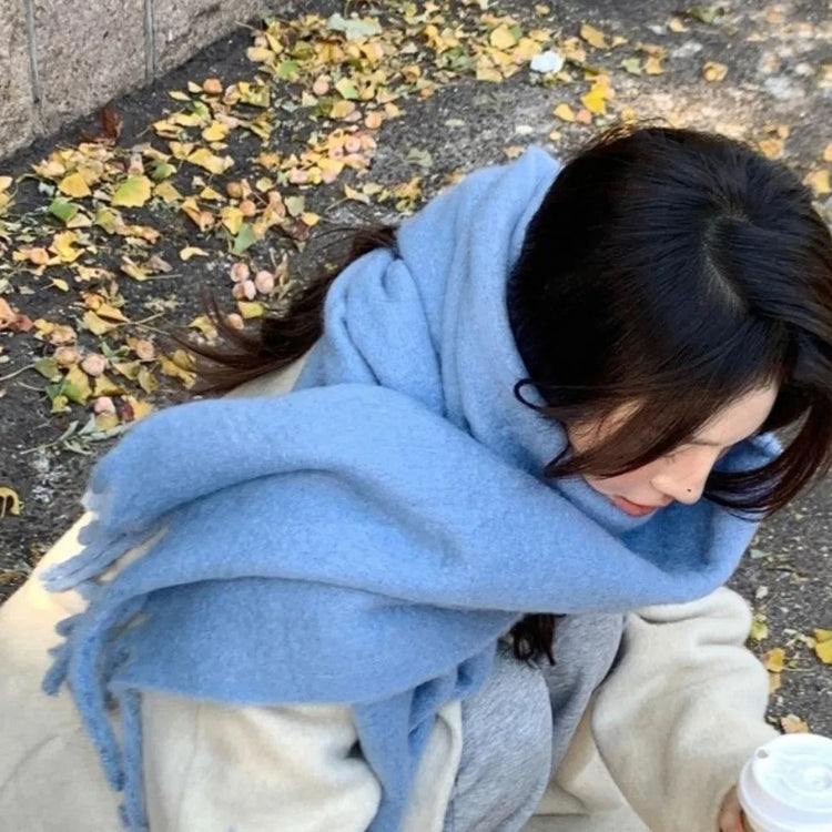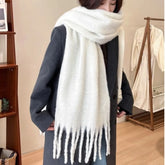 Retro Mohair Wool Scarf Plush Thicken Winter Cashmere Scarves Solid Color Tassel Long Shawl Girl