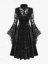 Model Number: Plus Size Gothic Floral Lace Panel Flare Sleeves Dress