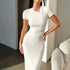 Short Sleeve Pure Color Slim Fit Spring Summer Dress Elegant Transoceanic Women's Fashion Knee-Length round Neck Dress