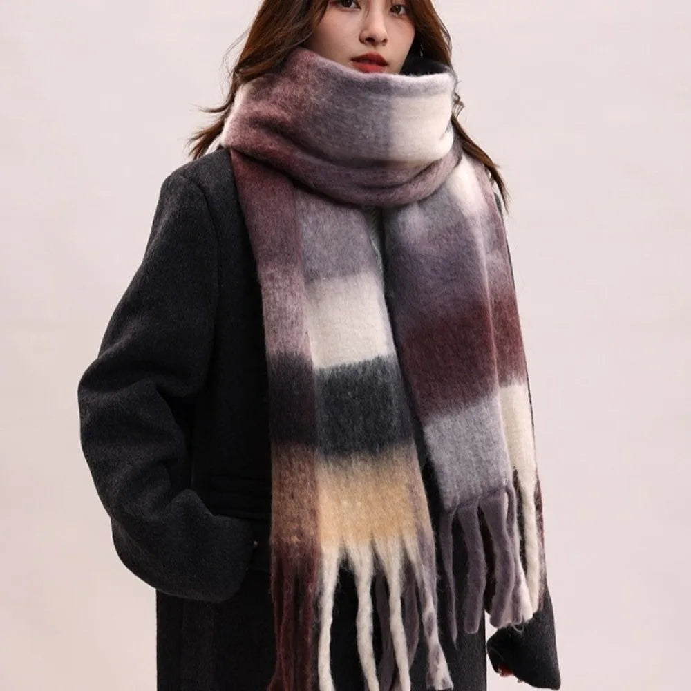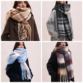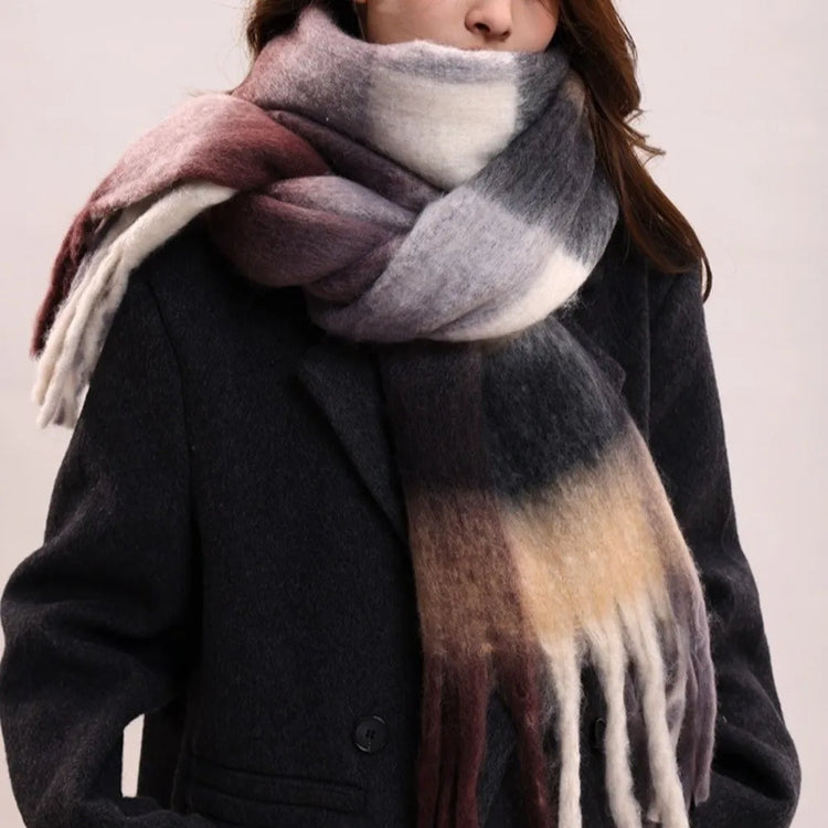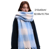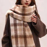 Simple Mohair Plaid Wool Scarf Tassel Plush Winter Cashmere Scarves Warm Thicken Long Shawl Autumn Winter