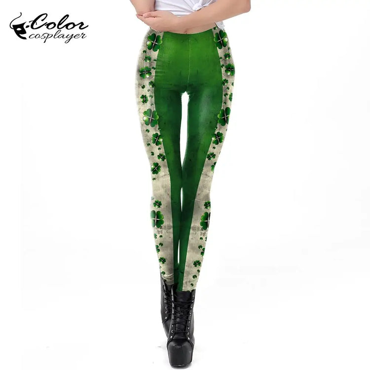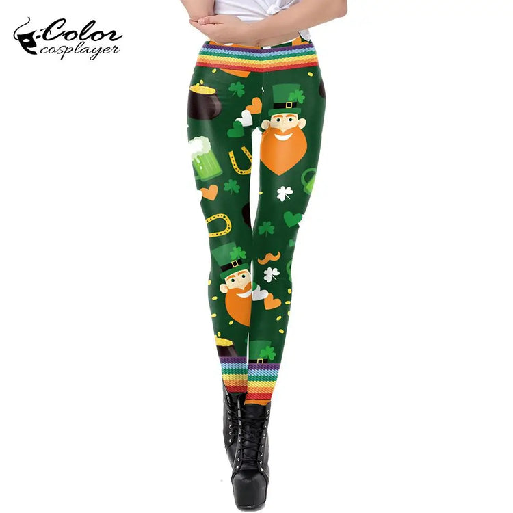 St Patrick's Day Christmas Leggings for Women New Year Leggings 3D Lace Design Winter Legging Christmas Clothes