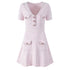 Summer Autumn Single Breasted Pearl Crystal Short Sleeve Knitted Sweater Dresses Women Sweet Knitwear Mini Knitting Dress
