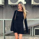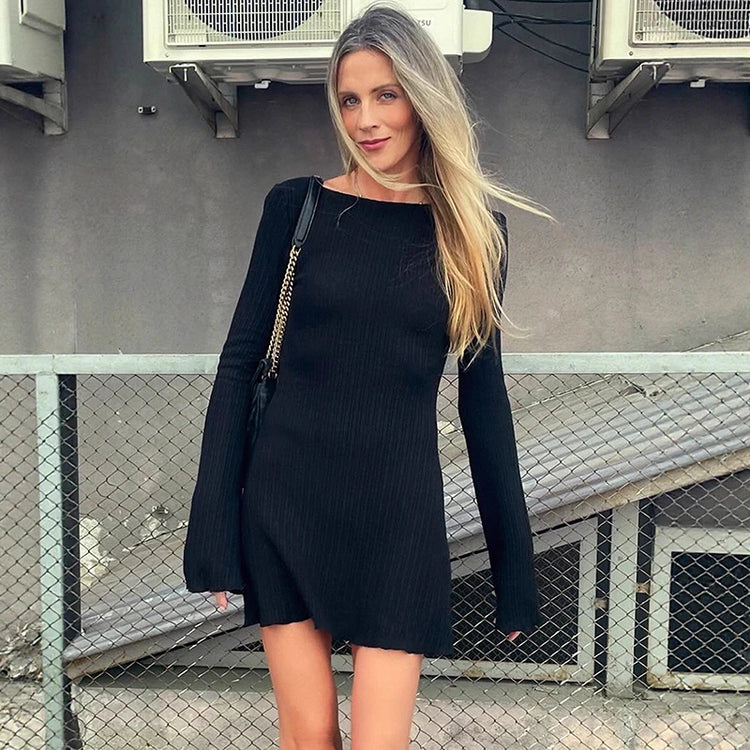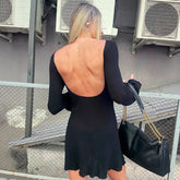 Tornova Backless Knitwear Long Sleeve Dress Female Sexy Bodycon Short Dress Solid Fashion A-line Sweater Dress Female High Waist