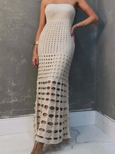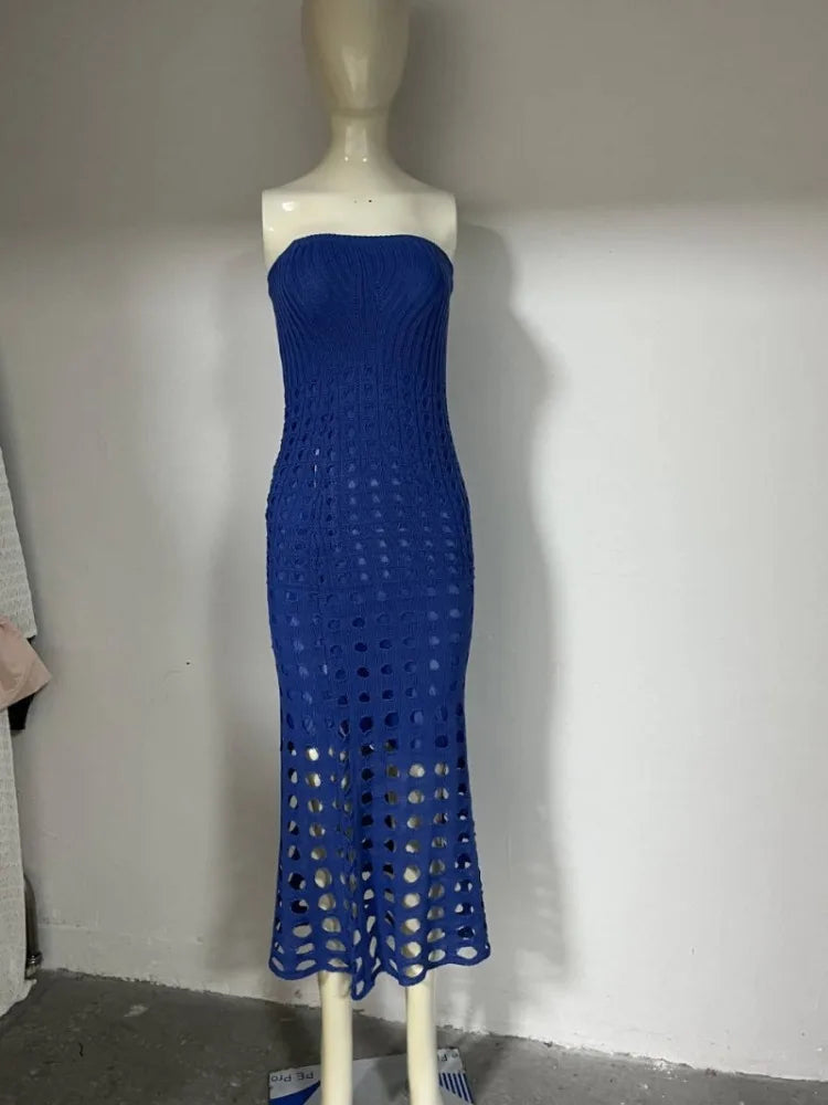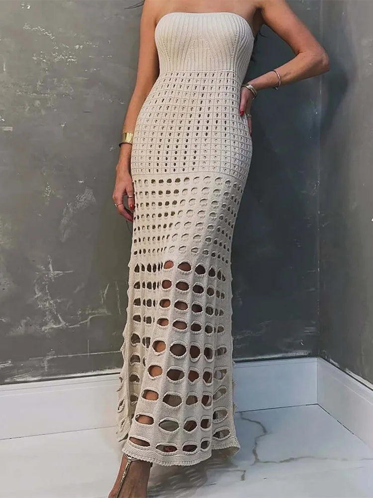 Trendix Knit Tube Top Dress Women Fashion Hollow Out Off Shoulder Slim Long Dresses Vacation Elegant Party Knitwear Beach Dress