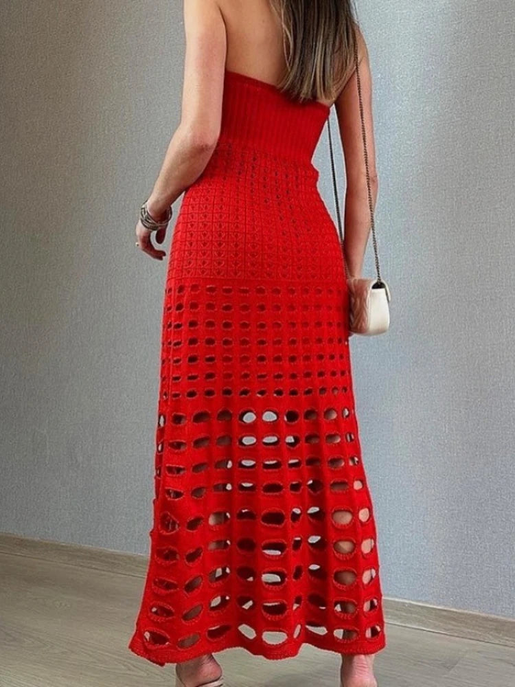 Trendix Knit Tube Top Dress Women Fashion Hollow Out Off Shoulder Slim Long Dresses Vacation Elegant Party Knitwear Beach Dress