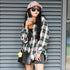 Women Cropped Shirts Plaid Preppy Style Loose Turn Down Collar Top Spring Korean Fashion Single Breasted Outwear Sunscreen Shirt