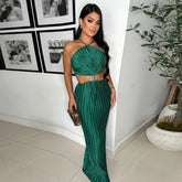 Women Elegant Evening Cockktail Party Maxi Dress Sexy Backless Lace Up Back Slit Pleated Dress Long Formal Wedding Guestt Dress