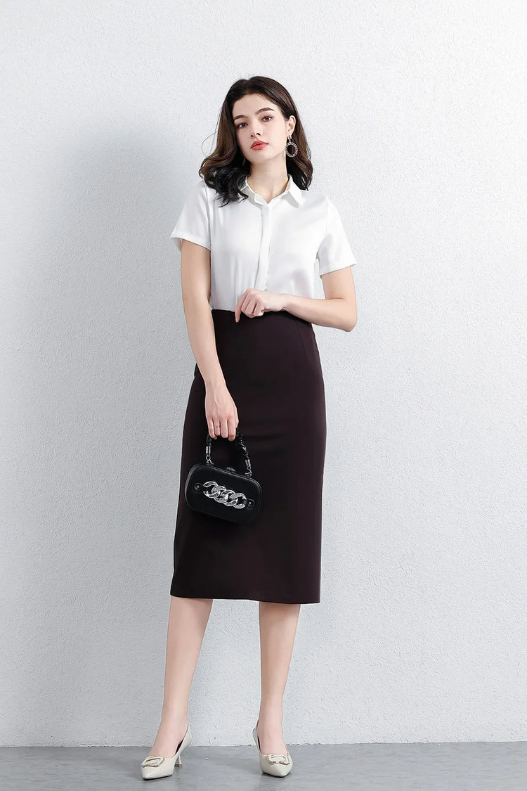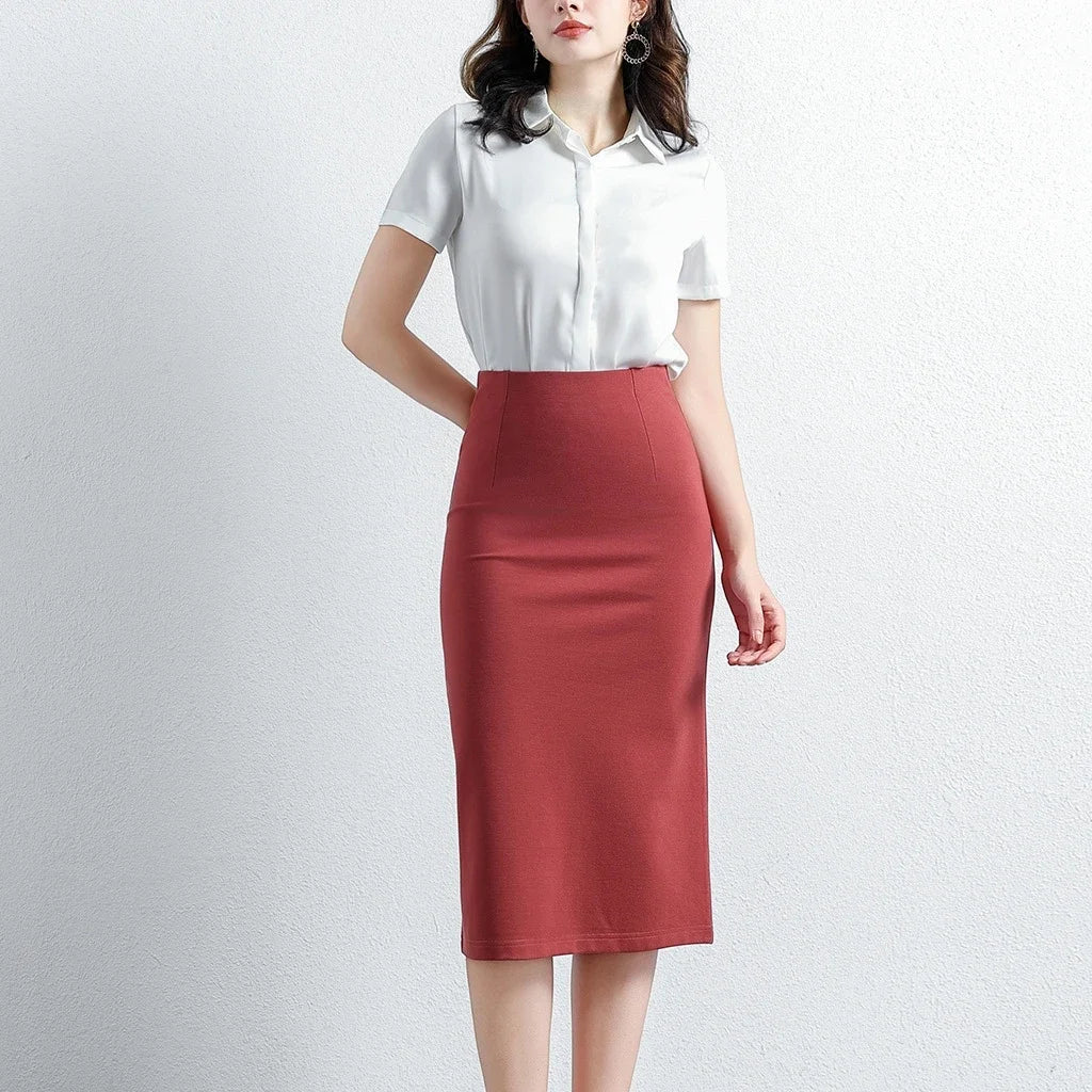 Women Elegant OL Bodycon Skirts Office Faldas Saia Work Slim Fit Jupe Autumn Fashion High Waist Solid Knee-length Skirt