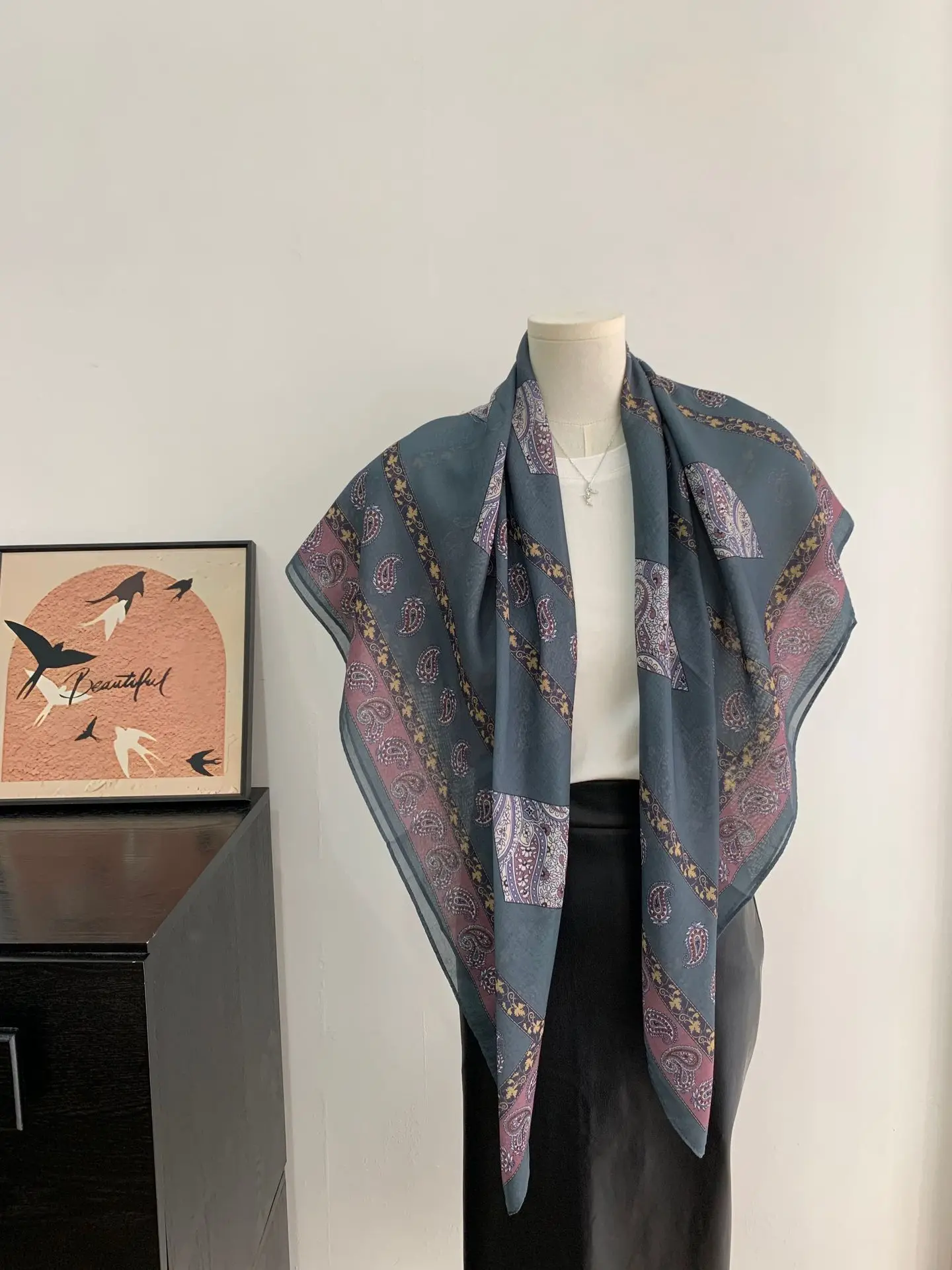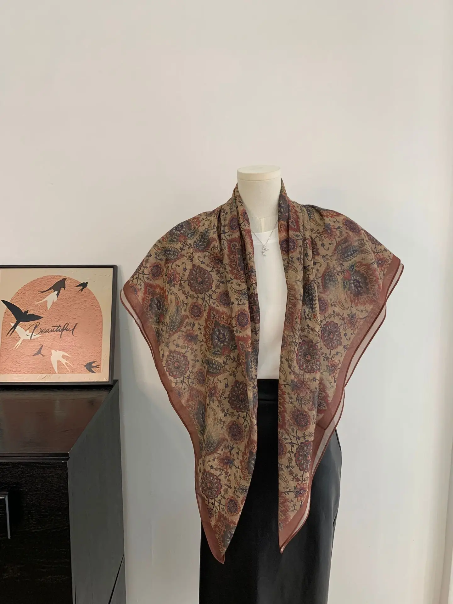 Women Scarf Shawl Lightweight French Vintage Large Square Unique Design Versatile Spring Summer Autumn Daily Hair Neck Wrap