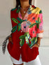 Women's Floral Print Long Sleeve Shirt Versatile Casual Button Design Shirt Elegant Tops