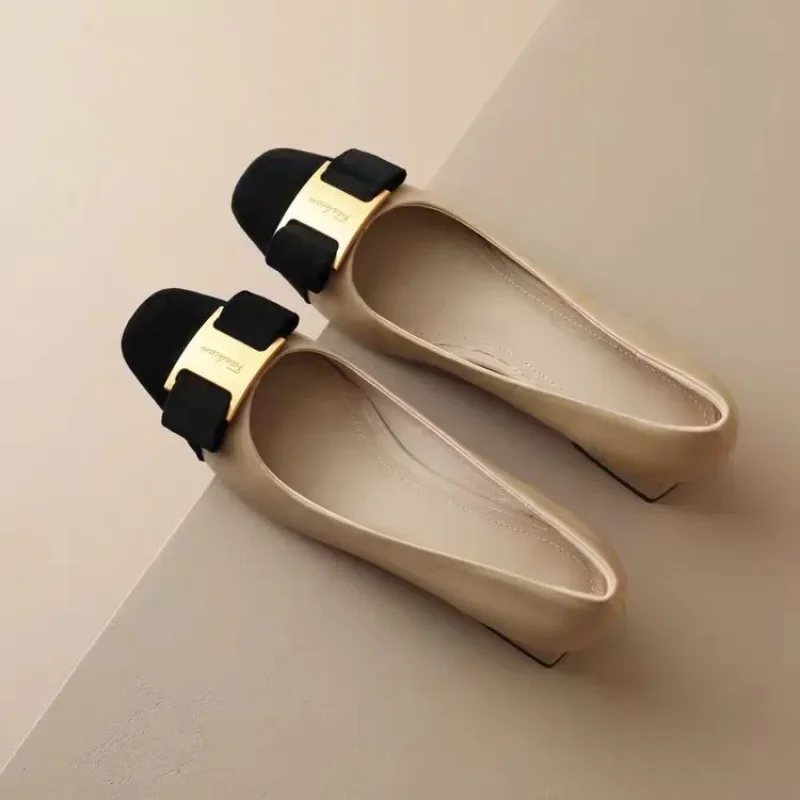 Women's Single Shoes Summer New Low Heel Square Head Metal Decorative Oxford Shoes Fashion Comfortable Soft Soled Leather Shoes